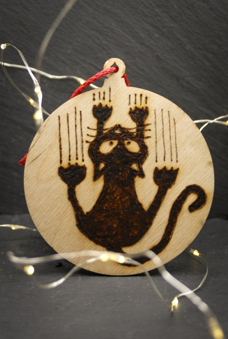 4.  > Drewniane wypalane ręcznie bombki - kot 9 - święta, mikołajki, boże narodzenie, prezent, upominek, gwiazdka, zabawne (nr 7090367)