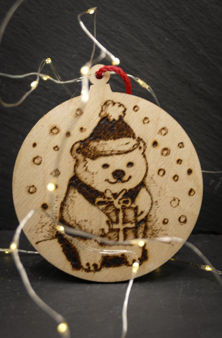 4.  > Drewniane wypalane ręcznie bombki - Miś 1 - święta, mikołajki, boże narodzenie, prezent, upominek, gwiazdka, zabawne (nr 7090378)