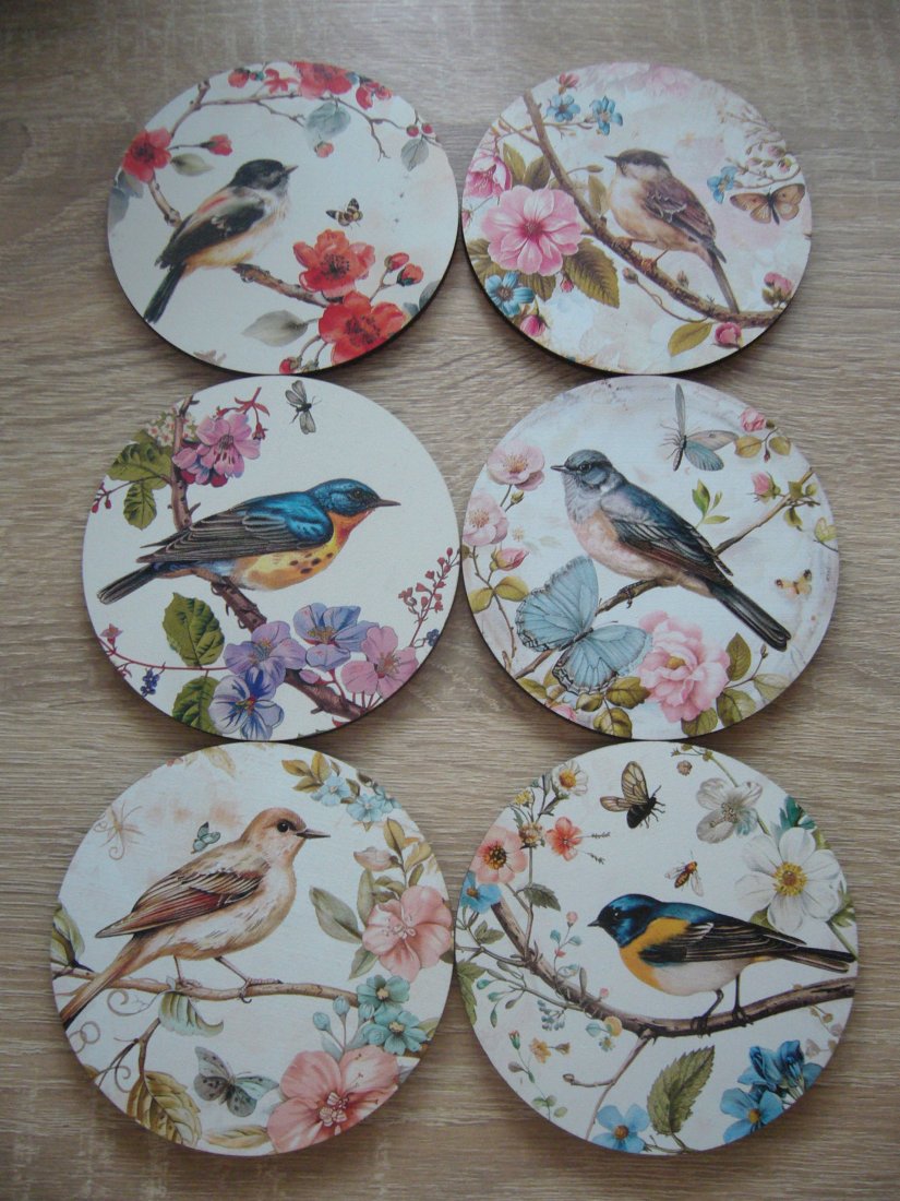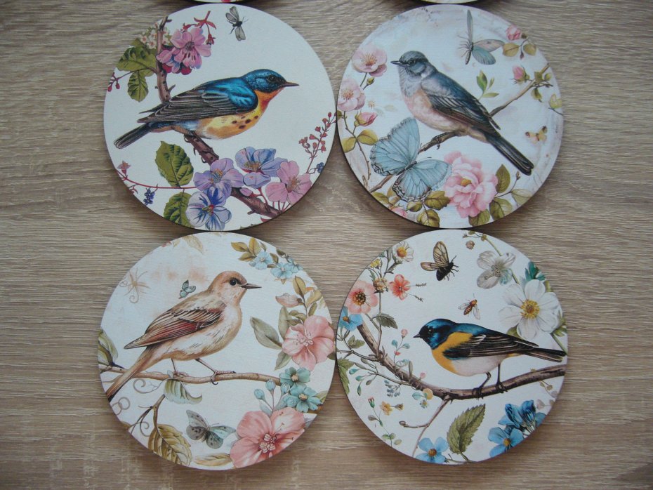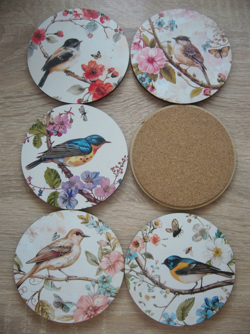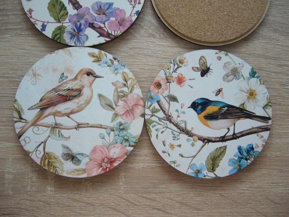 Drewniano korkowe podkładki pod kubek z motywem ptaków