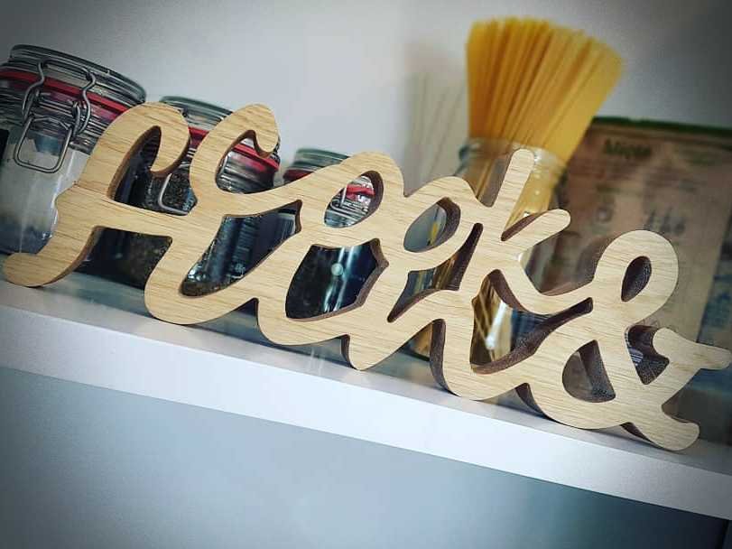 Drewniany napis "Cook & Fun" to idealna dekoracja do kuchni lub jadalni – miejsca, gdzie spotykają się smaki, zapachy i dobra energia. Świetnie sprawdzi się jako prezent dla miłośnika gotowania i osób, które traktują kuchnię nie tylko jako miejsce przygotowywania posiłków, ale także jako przestrzeń do wspólnego spędzania czasu.
