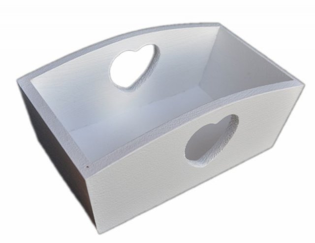 Drewniany pojemnik, który może służyć jako tacka na pieczywo lub na przechowywanie domowych drobiazgów w kuchni jak i w łazience.