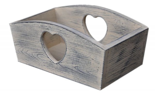 Drewniany pojemnik, który może służyć jako tacka na pieczywo lub na przechowywanie domowych drobiazgów w kuchni jak i w łazience.