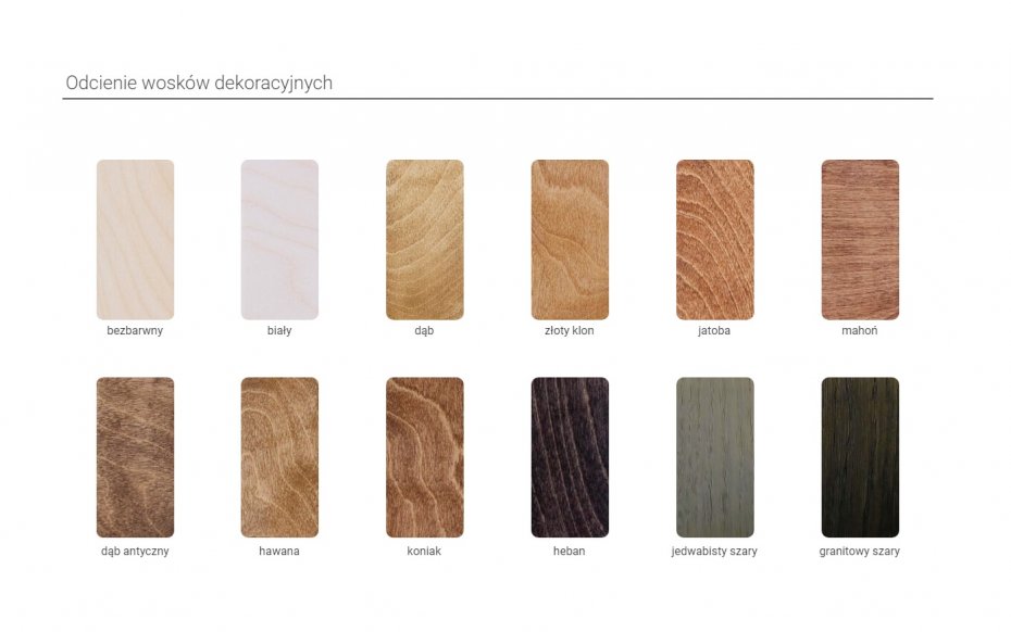 Wykończenie: Pokryty dekoracyjnym woskiem, a następnie zabezpieczony woskiem twardym.