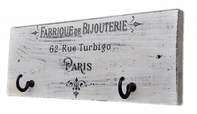 Drewniany wieszak malowany farbami akrylowymi, postarzony i pokryty lakierem bezbarwnym.