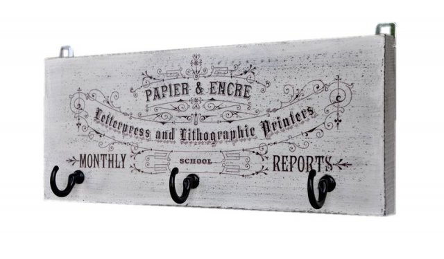 Drewniany wieszak malowany farbami akrylowymi, postarzony i pokryty lakierem bezbarwnym.