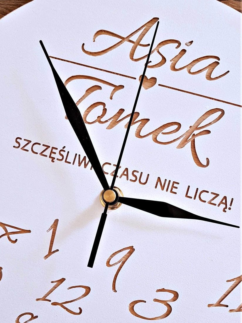 Nasz zegar "Numbers" wykonany został w całości z litego drewna bukowego. Dajemy Wam możliwość indywidualnej personalizacji - dzięki czemu może stać się on przepięknym prezentem z okazji ślubu, rocznicy czy też urodzin.