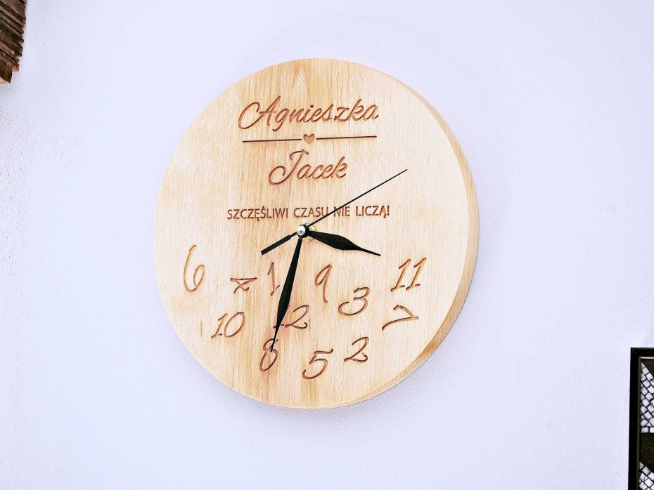 Nasz zegar "Numbers" wykonany został w całości z litego drewna. Dajemy Wam możliwość indywidualnej personalizacji - dzięki czemu może stać się on przepięknym prezentem z okazji ślubu, rocznicy czy też urodzin.