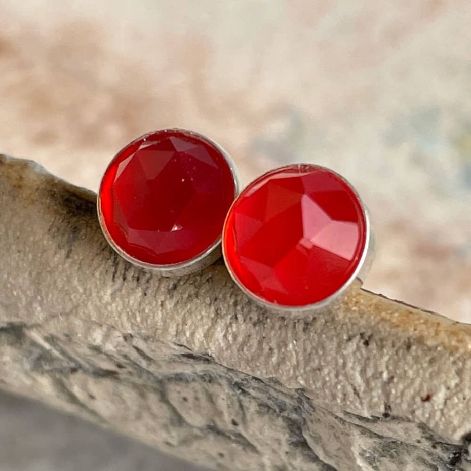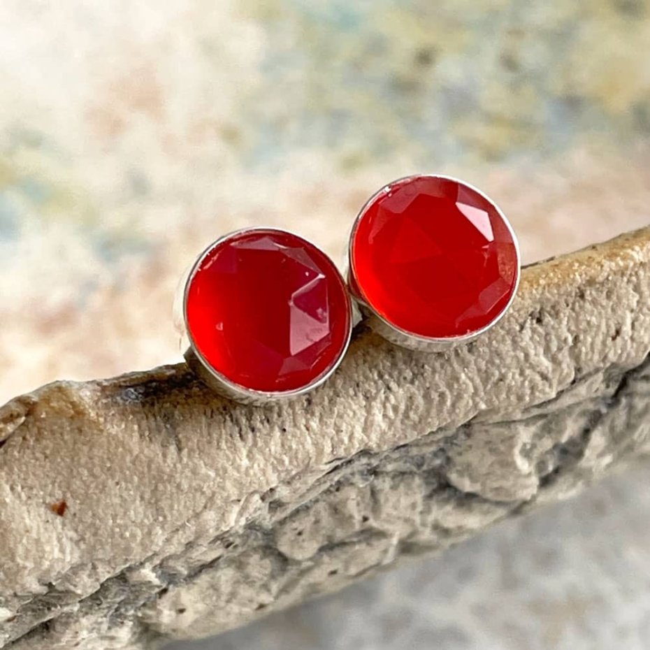 Sztyfty z karneolem należą do kolekcji "Drobinki", w skład której wchodzą minimalistyczne kolczyki z kamieniami oprawionymi w srebro. Kolczyki dodadzą stylizacjom dyskretnej elegancji oraz koloru, a za sprawą swojego małego rozmiaru nie będą rzucać się w oczy. Dzięki fasetowanej powierzchni, pięknie wyglądają w świetle. Doskonale sprawdzą się jako prezent dla bliskiej osoby, która lubi urozmaicać swoje stylizacje ręcznie tworzoną biżuterią. Do sztyftów dołączone są baranki minimalizujące ryzyko zgubienia kolczyków.