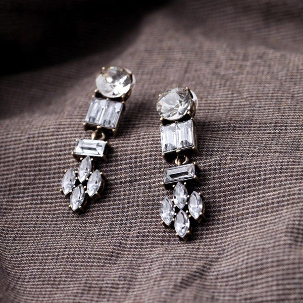 Podstawa w kolorze starego złota, kryształki z fasetowanego akrylu, przezroczyste.