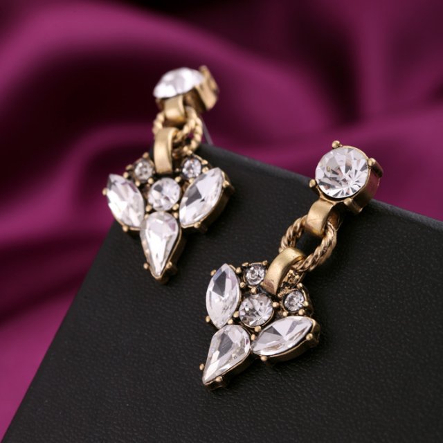 Drobne kolczyki w kolorze starego złota, wypełnione białymi krysztalkami.