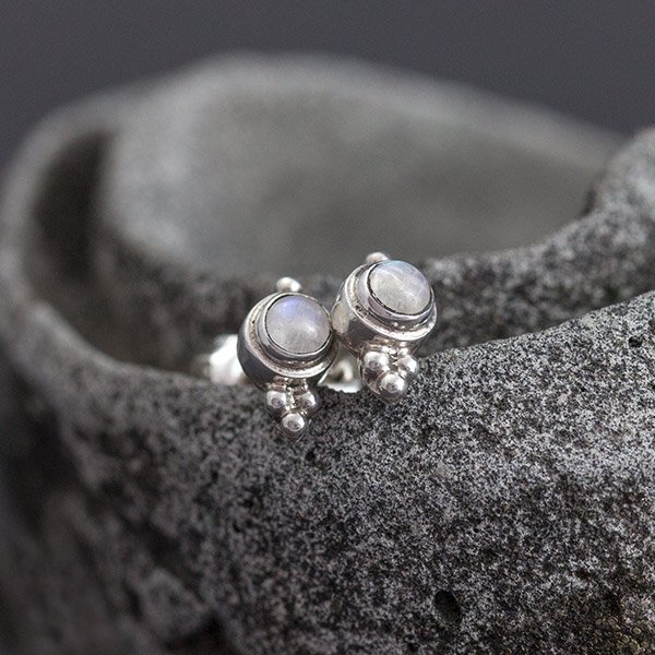 Drobniutkie kolczyki sztyfty wykonane ze srebra próby 925 oraz kamieni księżycowych. Wielkość kamieni 3 mm. Wielkość kolczyków 5x8 mm. Kolczyki są ozdobnie zapakowane.