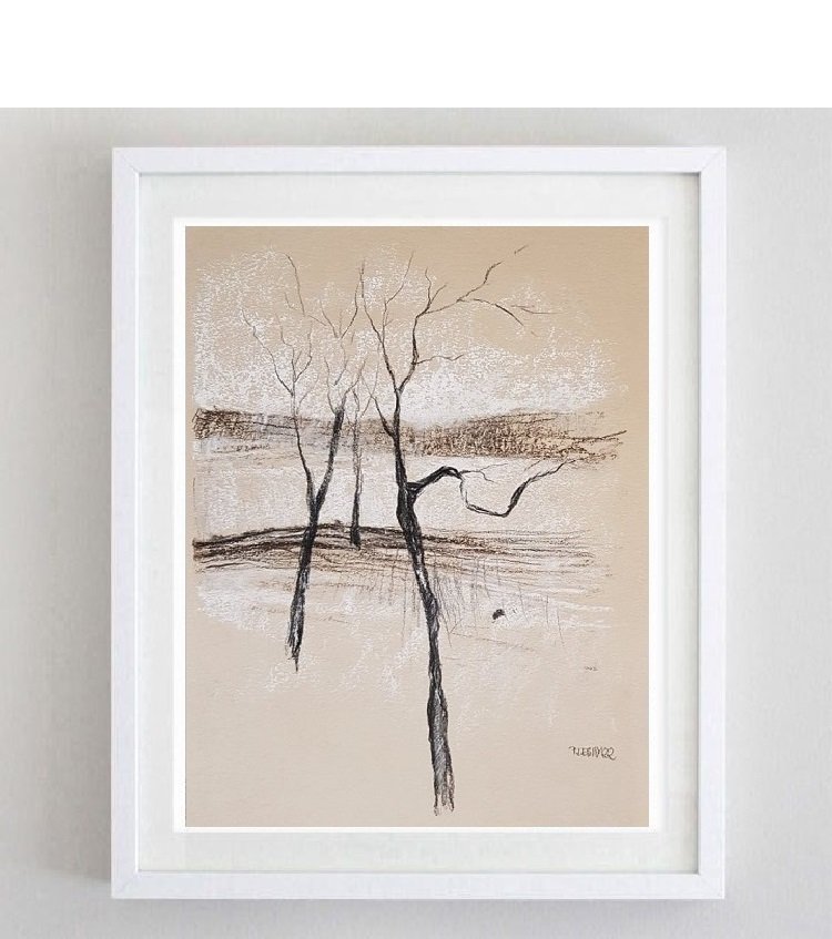 Praca wykonana węglem na papierze akwarelowym 200 g/m2 . Praca jest sygnowana, Przedstawiona w przykładowej ramie. Zabezpieczona fiksatywą. Wymiary pracy A4 . Kolory mogą się nieznacznie różnić od oryginału, co jest uzależnione od ustawień monitora.
