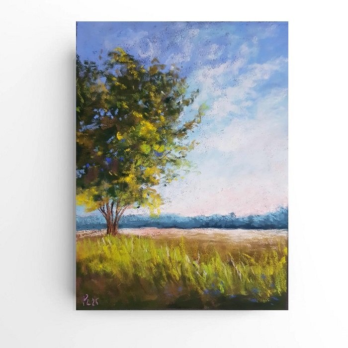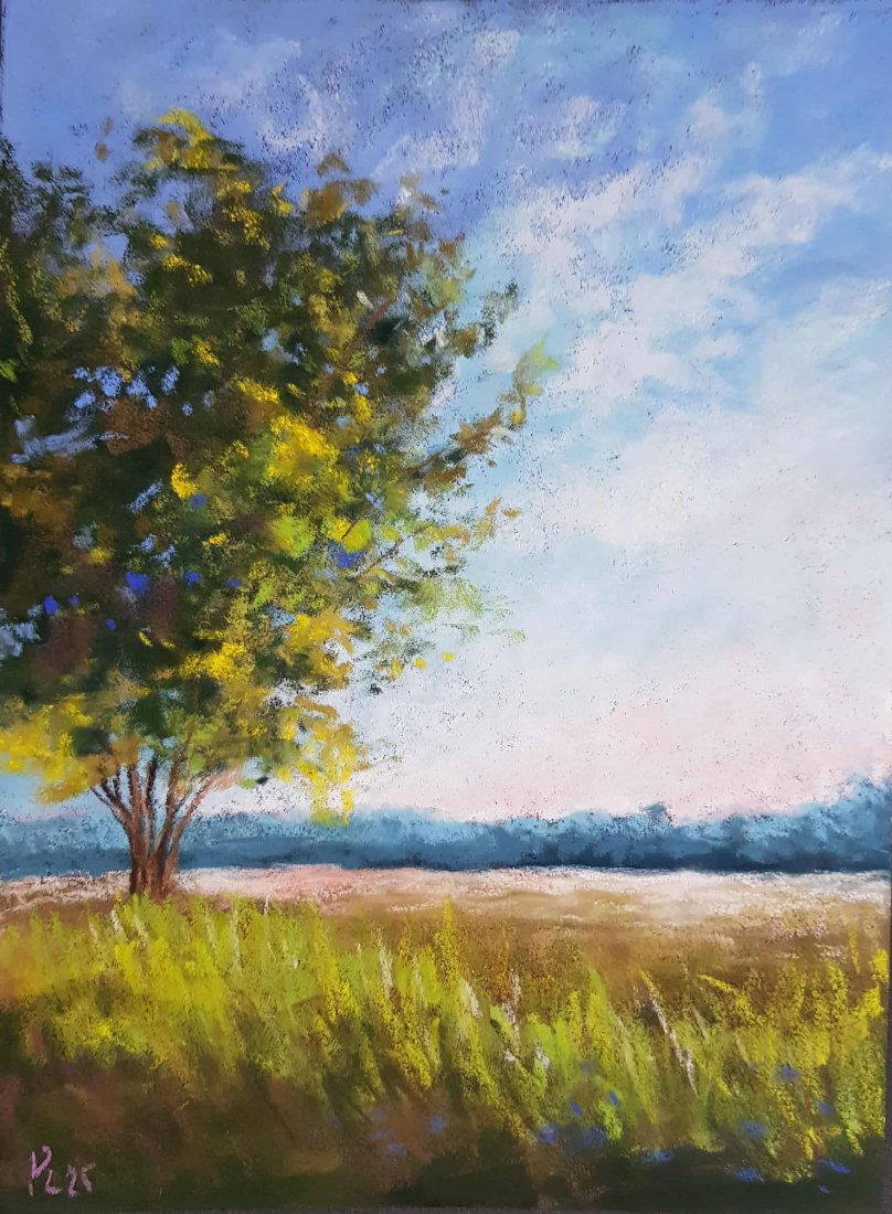 Praca wykonana pastelami suchymi na papierze przeznaczonym do pasteli Pastelmat 360 g/m2, format 24/18cm. Rysuję kredkami Sennelier/Rembrandt. Rysunek zabezpieczony fiksatywą. Zapraszam :)
