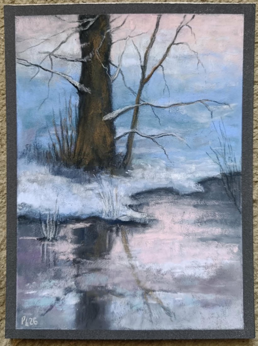 Praca wykonana pastelami suchymi na papierze przeznaczonym do pasteli Pastelmat 360 g/m2, format 24/18 cm. Rysuję kredkami Sennelier/Rembrandt. Rysunek zabezpieczony fiksatywą. Zapraszam :)