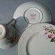 Urodziwy, szlachetnie porcelanowy komplet -zestaw śniadaniowy. Filiżanka, spodek i talerzyk. Sygnowany " duchess Bone China England fuchsia, oraz numerycznie ". Porcelana solidna, mocna, dźwięczna pod światło prześwitująca. Klasyczna forma i przepiękne fuksjowe zdobienie s naturalnych, miłych dla oka barwach. Złocenia. Wykończenie satynowo - błyszczące. Ranty subtelnie falbankowe. Filiżanka duża herbaciana, bądź na dużą kawę. Filiżanka - szer. 11 góra 8,5 dół 4,5 wys. 7 Spodek - góra 14 dół 6,5 wys. 1,5 talerzyk - 16,5 dół 9 wys. 1,5 wnętrze 11 cm Stan zachowania bardzo dobry. Nadaje się na oryginalny i elegancki prezent :) Uwaga! ! ! dla zainteresowanych -mam ich sześć; )