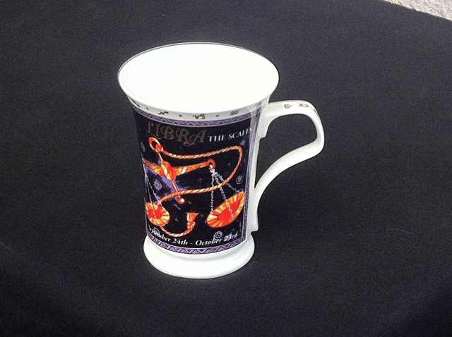 Kubek z przyjemnie lekkiej porcelany - seria znaków astrologicznych - tutaj: Waga :) Sygnowany.DUNOON design by Ruth Beck Made in England.