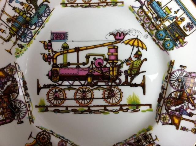 Duży porcelanowy talerz, sygnowany Newcastle Upon Tyne, England. Bardzo szlachetne wykonanie - fantastyczna, barwna, ilustratorska malatura, delikatnie fakturowa i jedwabiste jakościowe szkliwienie. Miękka biel porcelany, złocenie na rancie. Użytkowy i dekoracyjny zarazem. 27,5 x 2 cm. Stan zachowania dobry plus - drobne ryski na malaturze i przetarcie fragmentu złocenia. Niewiele używany, wciąż lśni wyjątkowością :)