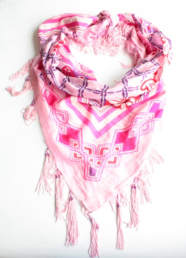 Wielka chusta ozdobiona frędzlami, wykonana z miękkiej, delikatnej bawełny.