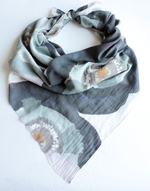 Miękka, duża chusta w odcieniach szarości. Materiał oceniam na bawełnę.