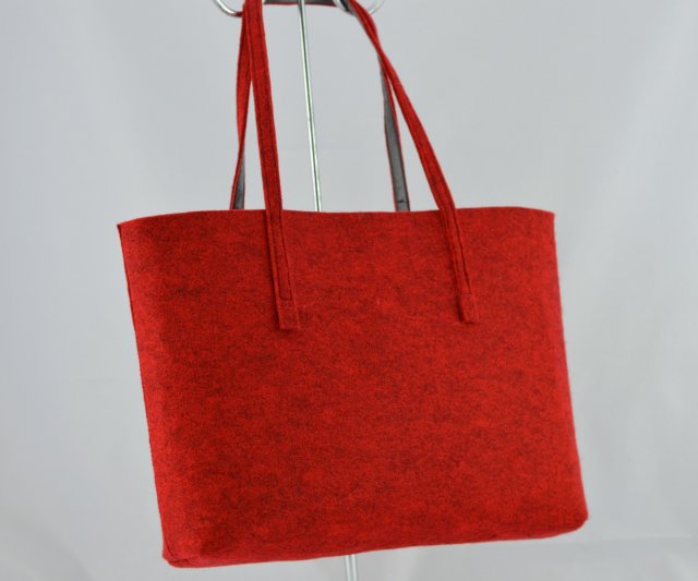 Torebka została wykonana z grubego i mocnego filcu. Prosta, minimalistyczna forma. Rączki torebki zostały wzmocnione poprzez podszycie ich taśmą satynową. Torebka wygląda naprawdę ładnie! Szerokość torebki 45cm, wysokość bez rączki - około 32 cm, głebokość - 8cm, długość rączki od brzegu do brzegu torebki- 60cm. Została wykonana z dbałością o każdy szczegół. W środku znajdują się 2 filcowe kieszonki. Jedna na telefon, a druga jest zamykana na suwak. Torebka nie posiada zamknięcia.