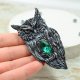 Duża, bardzo efektowna broszka sowa, z przepięknie mieniącym się z kryształem w pięknym zielono-szmaragdowym kolorze.