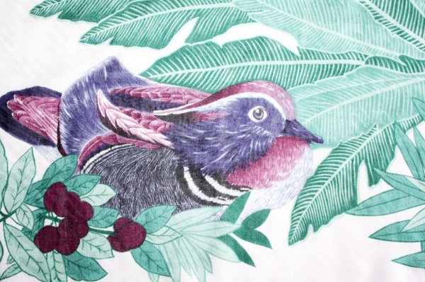 Duża, miękka, grubsza chusta w stylu retro. Wykonana prawdopodobnie z wiskozy z dodatkiem poliestru.