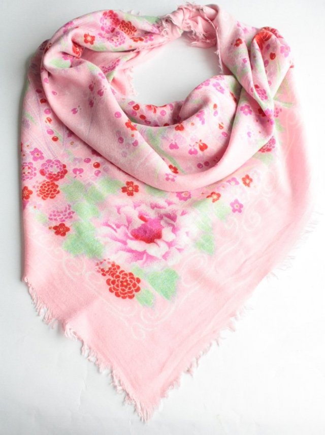 Miękka, duża chusta w kwiatowe wzory. Materiał to prawdopodobnie wiskoza.
