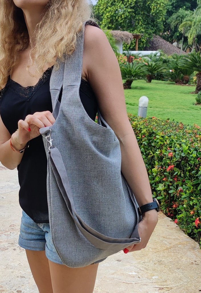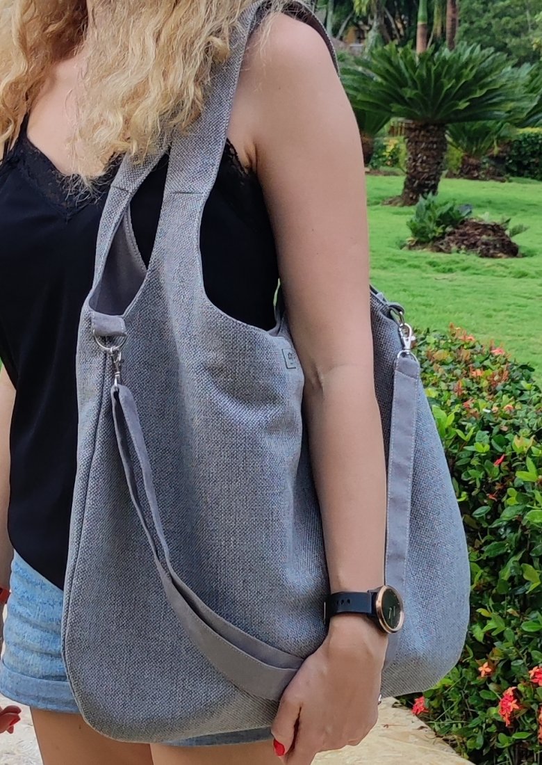 bawełniana podszewka, zapinana na suwak, w środku dwie kieszonki 20cm x 16cm, długość paska regulowana,