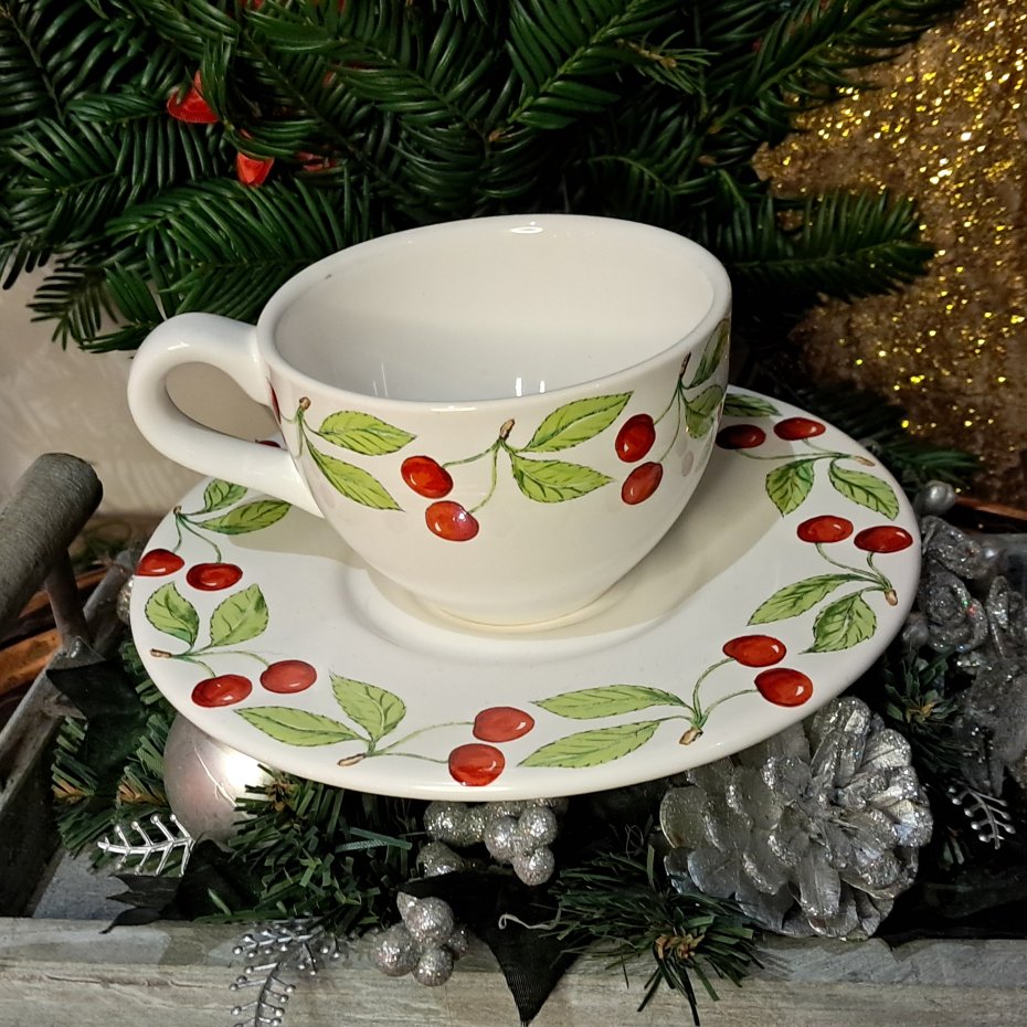 Tagi: #ceramika użytkowa, #filiżanka do kawy, #filiżanka ze spodkiem, #wiśnie