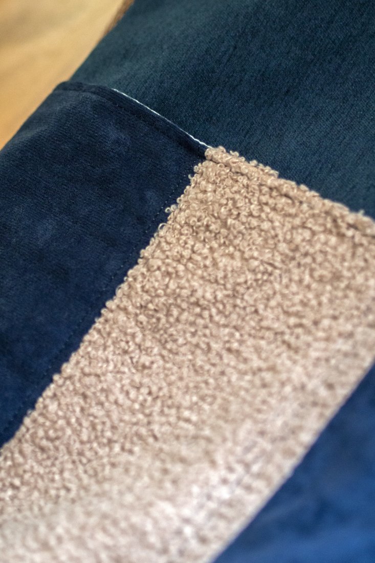 Z przodu dwie kieszenie w stylu patchwork. Całość zapinana na zapięcie magnetyczne.