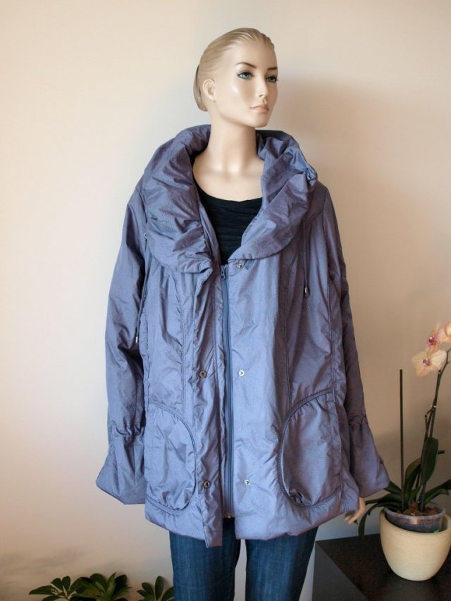 śliczna kurtka , z lekkim ociepleniem, w zgaszonym kolorze fioletowym w panterkowy wzór. bardzo ładne detale, kołnierz, który można upiąć. wewnątrz kieszonka na telefon, zapięcie na zamek i napy. bardzo lekka. brak jakichkolwiek metek. Stan bardzo dobry. duży rozmiar, proszę sprawdzić wymiary.