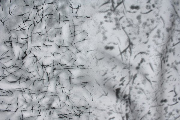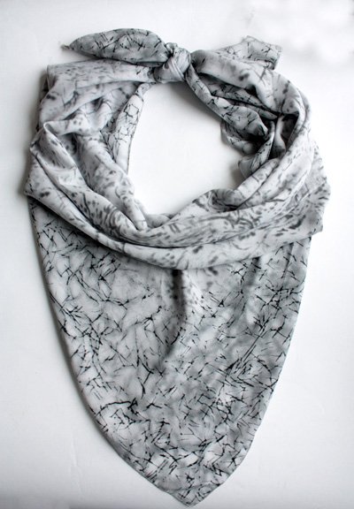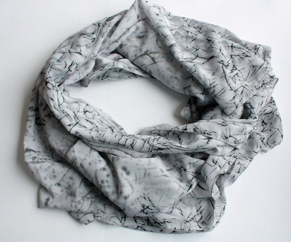 Duża chusta w ciekawe wzory na tle gołębiej szarości.