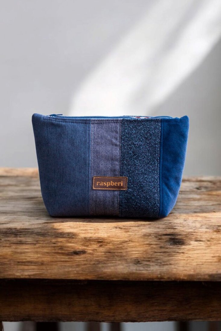 Duża kosmetyczka w kolorze granatowym. Bardzo przyjemna w dotyku. Wykonana w duchu no waste.