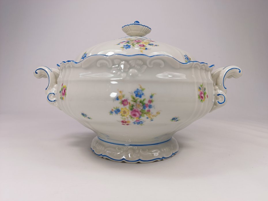 Duża porcelanowa waza Art Deco z lat 30. Stan zachowania bardzo dobry. Na innych ogłoszeniach mam więcej naczyń z kompletu.
