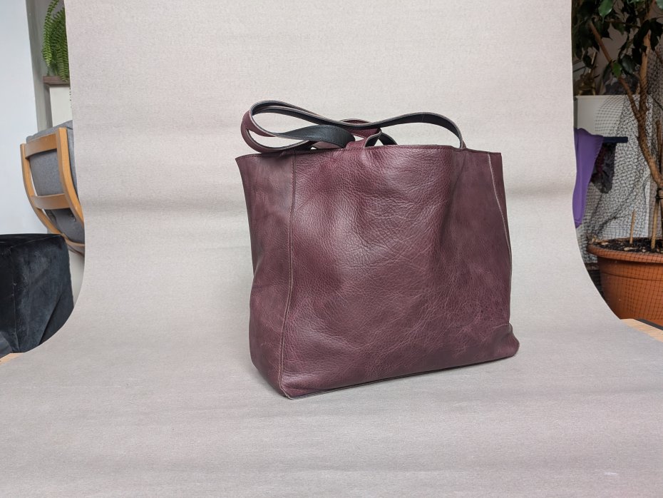 Duża skórzana torba. Uszyta ze skóry naturalnej miękkie, mięsistej.
