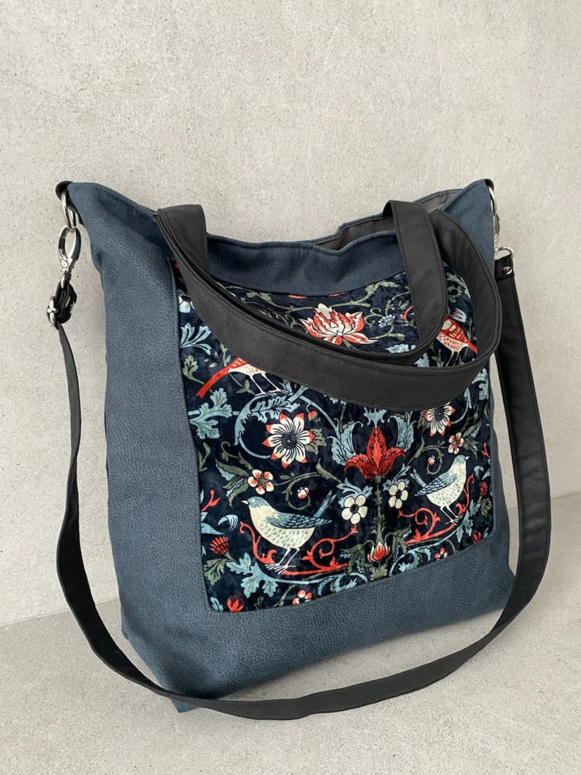 Przepastna torba z ornamentem wykonana z nubuku syntetycznego z printem na welurze.