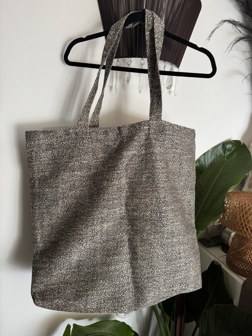 Duża torba shopper z grubego materiału - szaro-brązowy melanż. Idealna na zakupy. Nigdy nie noszona.
