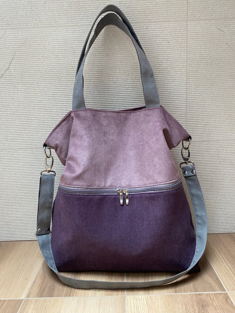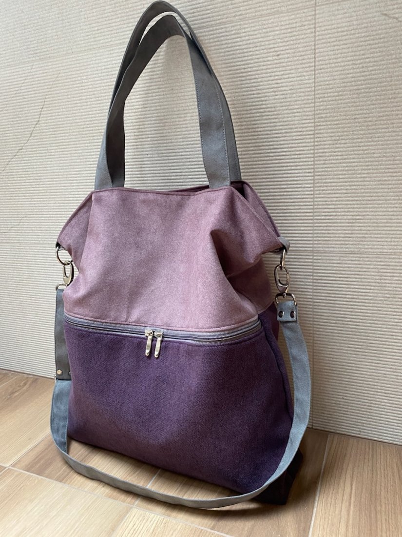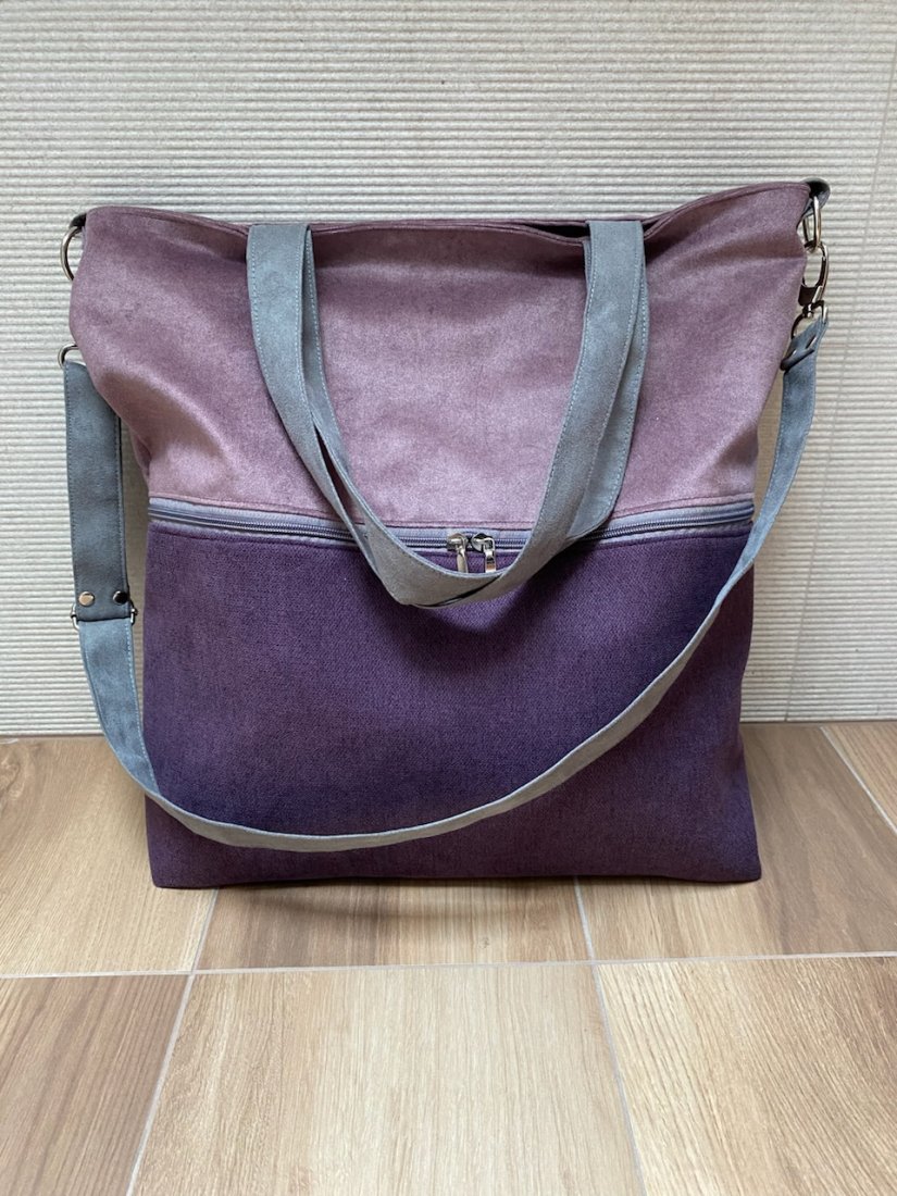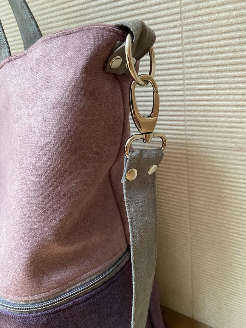 Duża torba wykonana z alcantry (syntetycznego zamszu) i weluru.