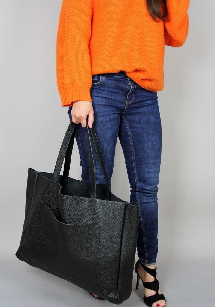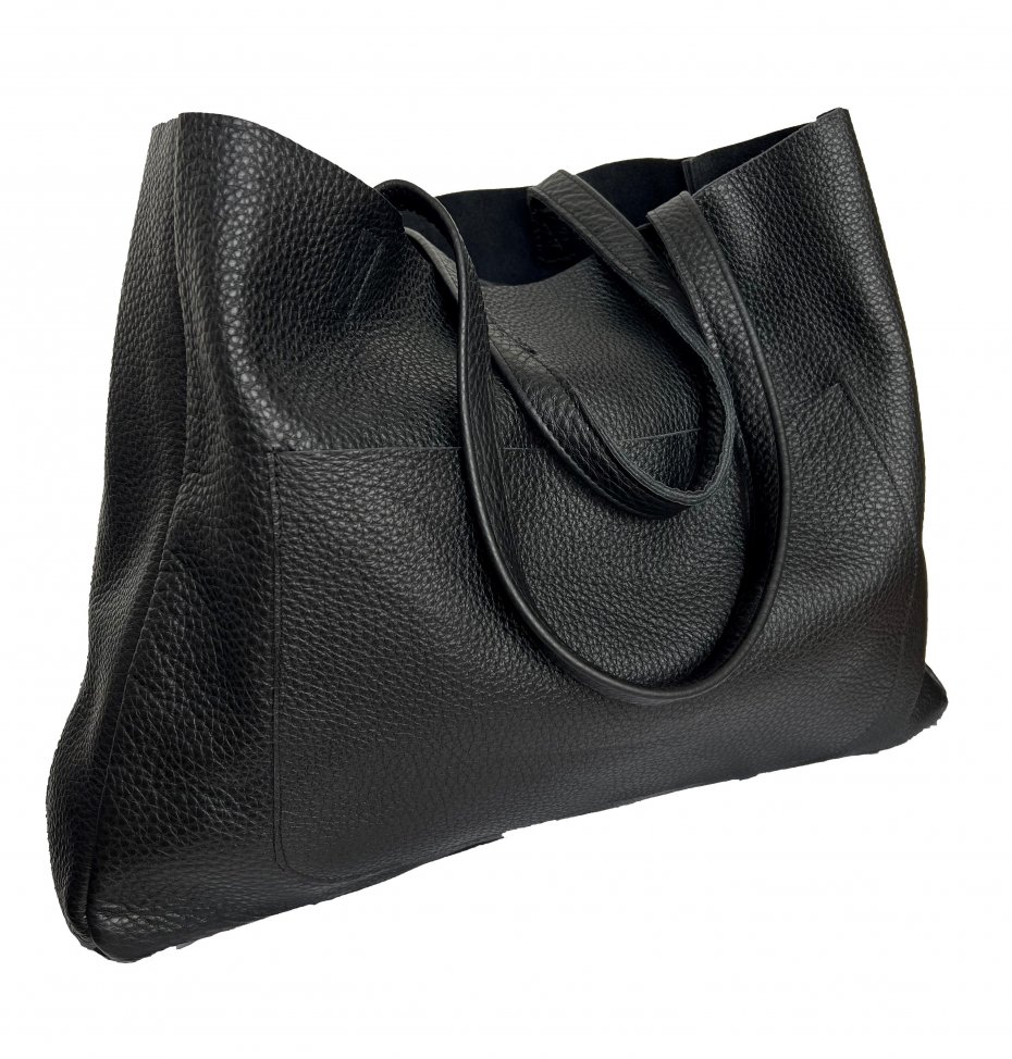 Ta duża czarna torba wykonana jest z wysokiej jakości włoskiej skóry. Torebka jest bardzo pojemna i praktyczna. Wykonana z dbałością o każdy szczegół. Świetnie sprawdzi się jako torba na zakupy.