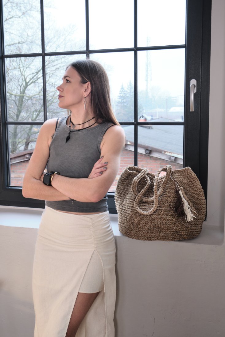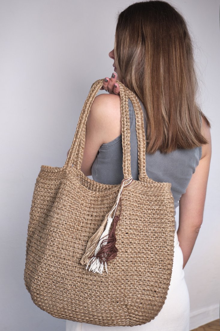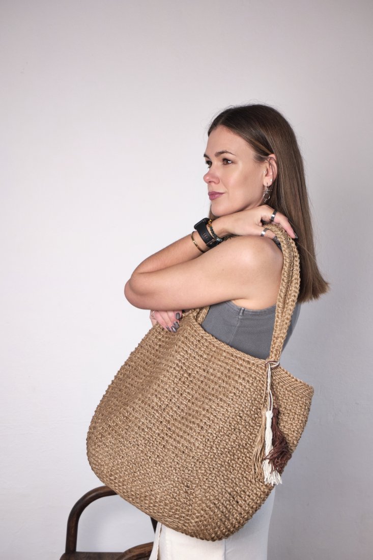 Naturalny kolor juty sprawia, że pasuje do wielu stylizacji – zarówno letnich sukienek, jak i codziennych zestawów z jeansami.