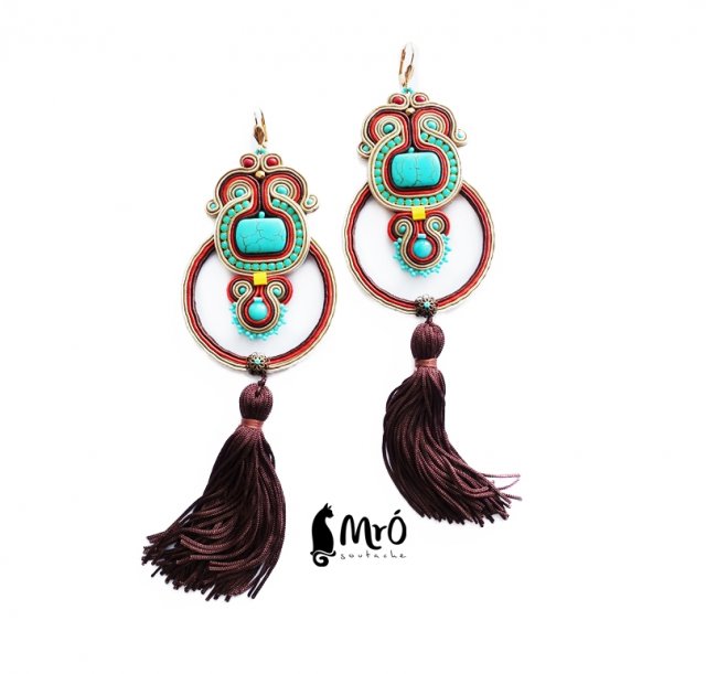 Kolczyki wykonane metodą haftu soutache. Etniczne i spektakularne.