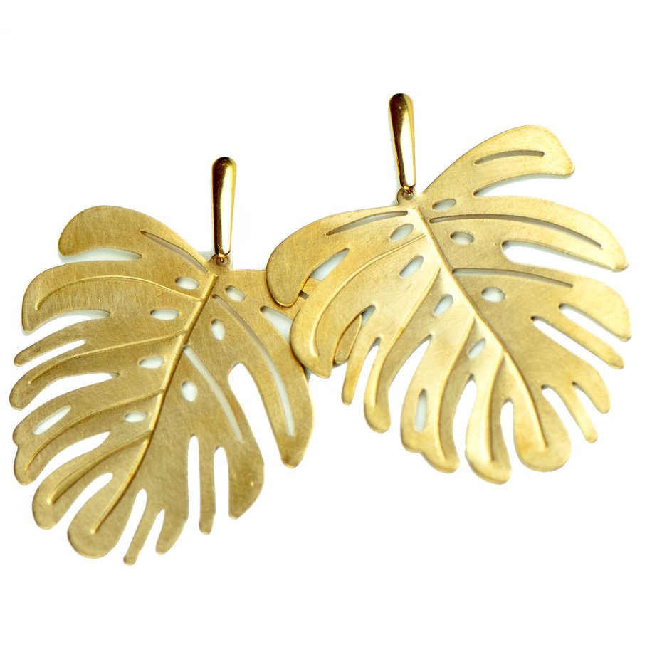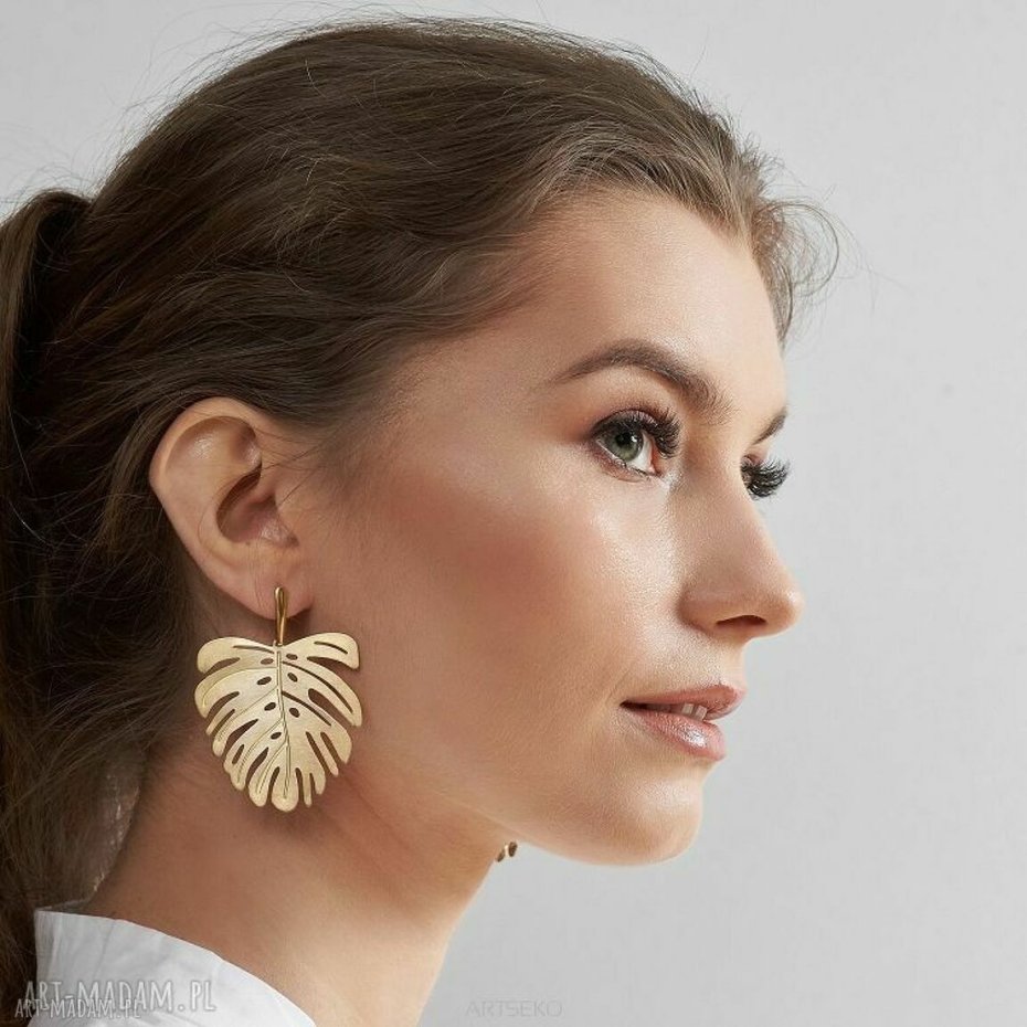 Kolczyki w kształcie liści monstery w odcieniu złota, wykonane z wysokiej jakości mosiądzu wolnego od niklu, ołowiu i kadmu. Wyrazista forma inspirowana naturą sprawia, że to nowoczesny, charakterystyczny dodatek dla kobiet lubiących mocniejsze akcenty w biżuterii. Kolczyki pięknie podkreślają styl i dodają charakteru zarówno codziennym, jak i bardziej eleganckim zestawom.