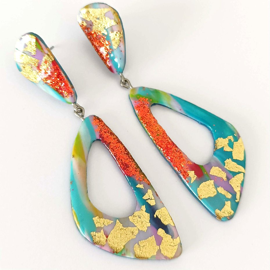 Tagi: #długie złote kolczyki, #kolorowa biżuteria, #niebieskie kolczyki, #pomarańczowe kolczyki
