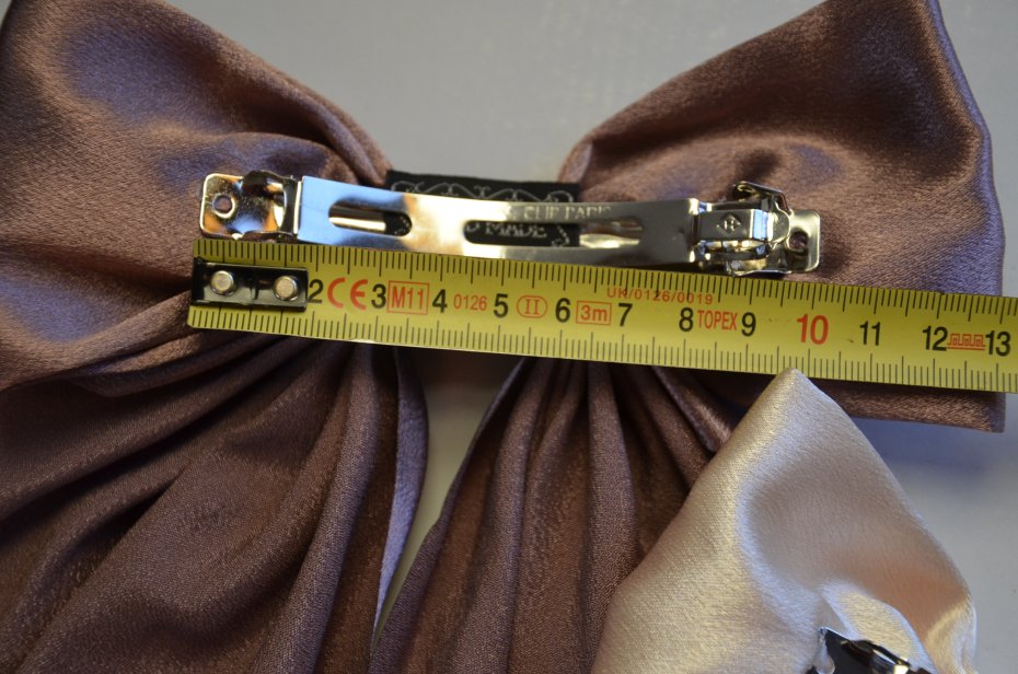 nowe kokardy ze spinkami, wymiary na zdjęciach
