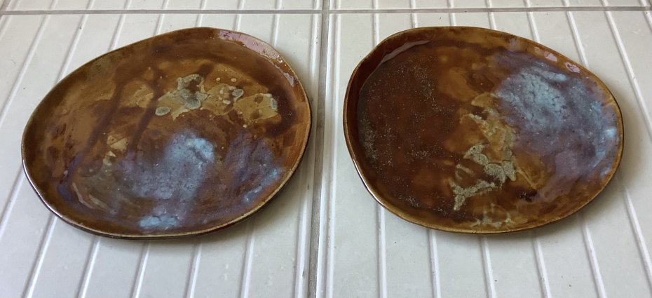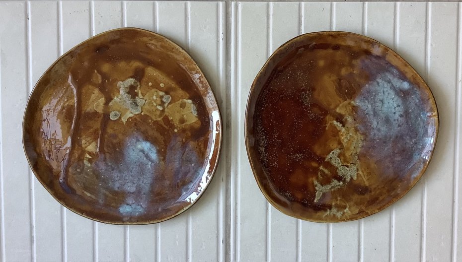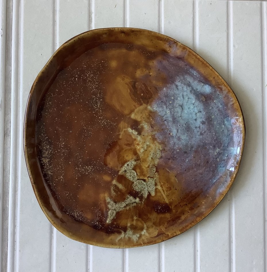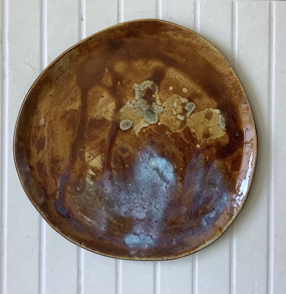 Zapraszam do kupna talerzy ręcznie robionych z jasnej kropkowanej gliny. Każdy wyjątkowy i jedyny w swoim rodzaju, chociaż szkliwione tym samym szkliwem - brązem jasnym, brązem miodowym, trochę błękitu i różu. Niby obiadowe, ale świetnie sprawdzą się także, jako śniadaniowe - dla tych, którzy lubią mieć dużo miejsca na duże śniadanie:)