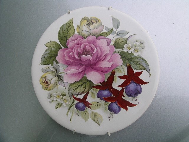 Duzy dekoracyjny Medalion Ceramiczny z profesjonalnym uchwytem do powieszenia. Oczywiście może być użytkowy - jako podstawka pod gorące naczynie,ale mnie się bardziej jakoś kojarzy z dekoracją ścienną; Jest bardzo piękny i rzadko spotykany.