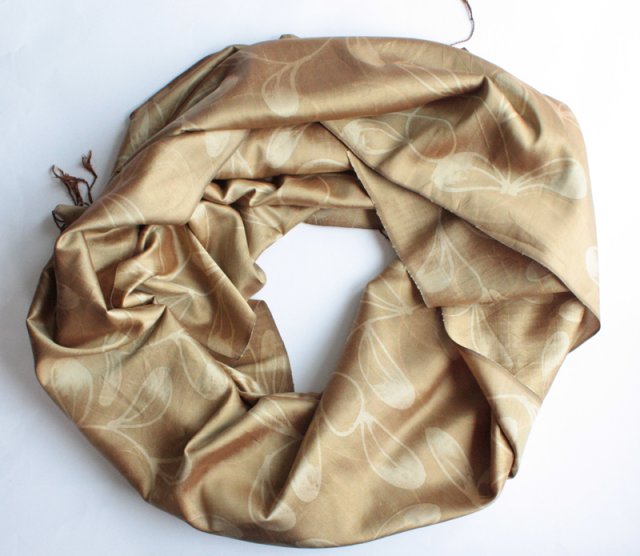 Duży szal w roślinne wzory. Materiał oceniam na jedwab.
