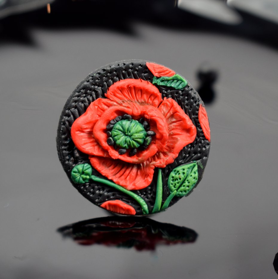 Średnica ozdobnego elementu z makiem to 3 cm.