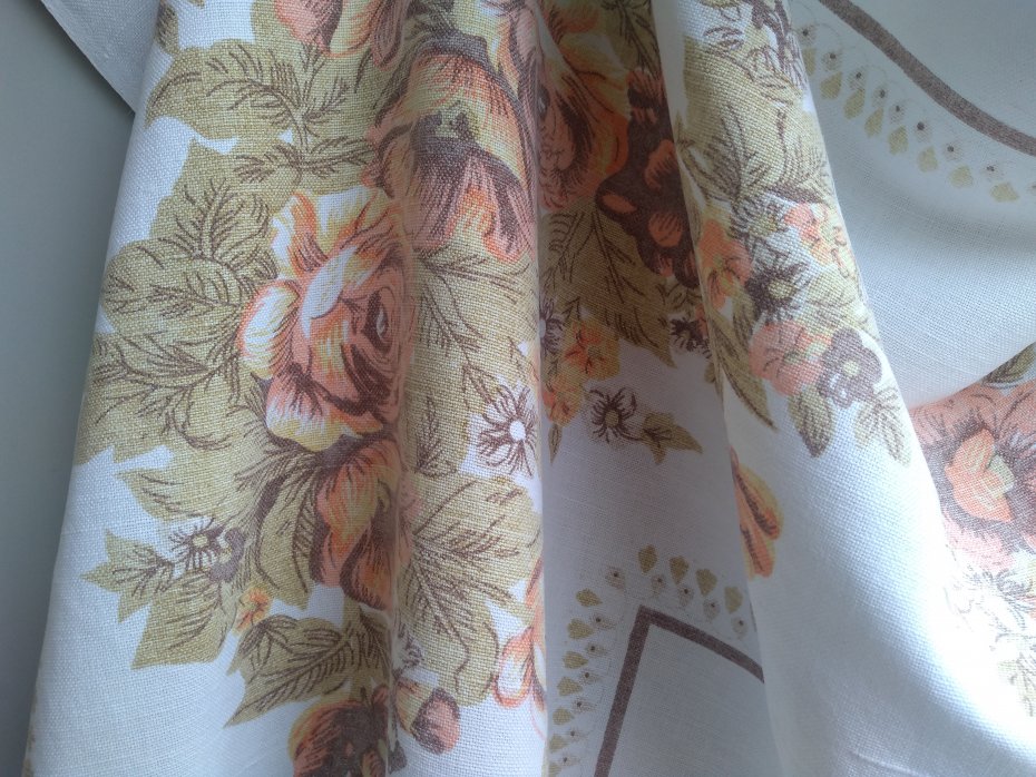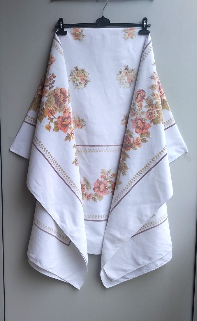 Unikatowy obrus true vintage z lat 70. Może służyć także jako inny element wystroju mieszkania. Wzór w pastelowych kolorach.