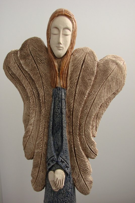 duży, smukły ceramiczny anioł, ciężki, stabilny, pięknie wykonany, rękodzieło